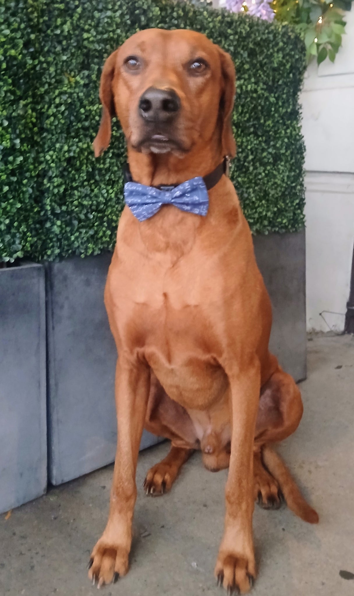 *Please note that each bow tie is individually made from a custom fabric. Your pups bow tie will have the same pattern as the one pictured, but will vary slightly from the photos.
